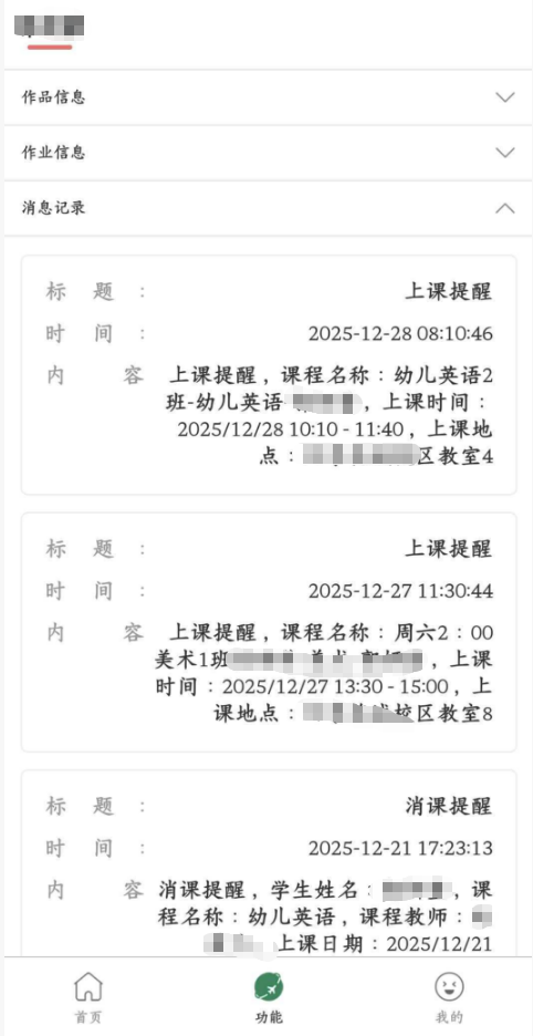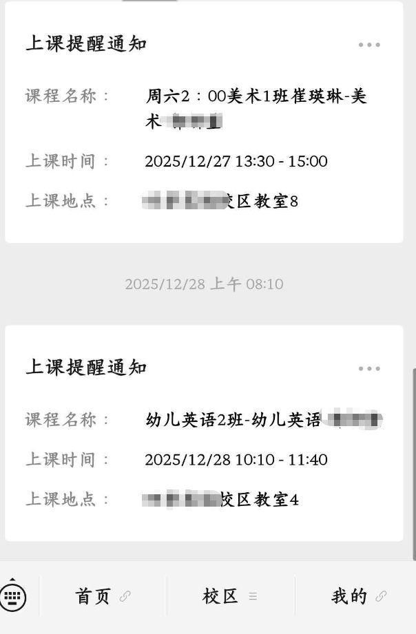 上課提醒:課程開始前自動推送提醒,避免缺課漏課。